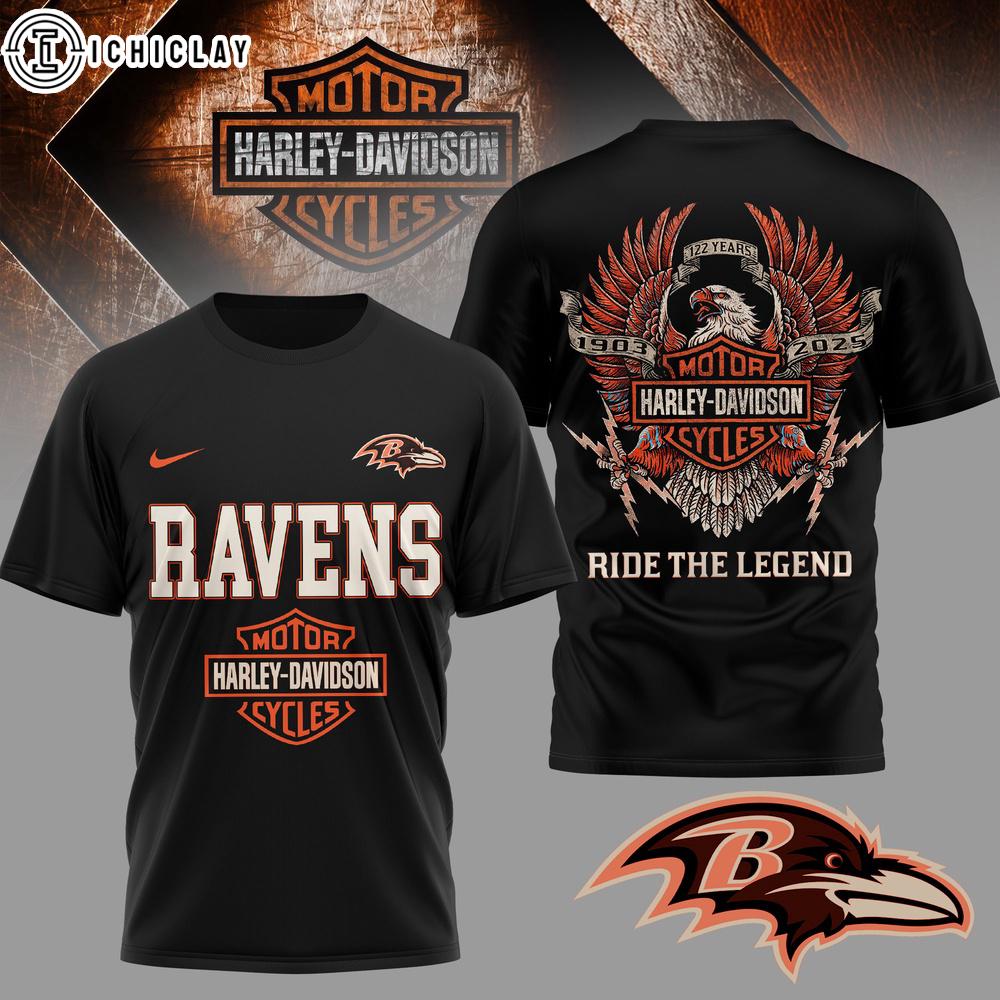 Baltimore Ravens NFL 122 Year Harley Davidson 3D T-Shirt For Fans