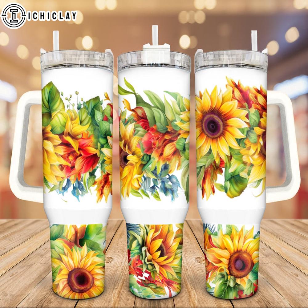 Photos Of Colorful Sunflower Stainless Steel Tumbler 40Oz With Handle