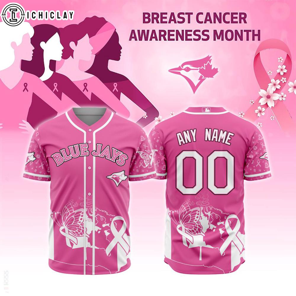 Product details: Custom Name And Number MLB Toronto Blue Jays Breast Cancer Awareness Baseball Jersey