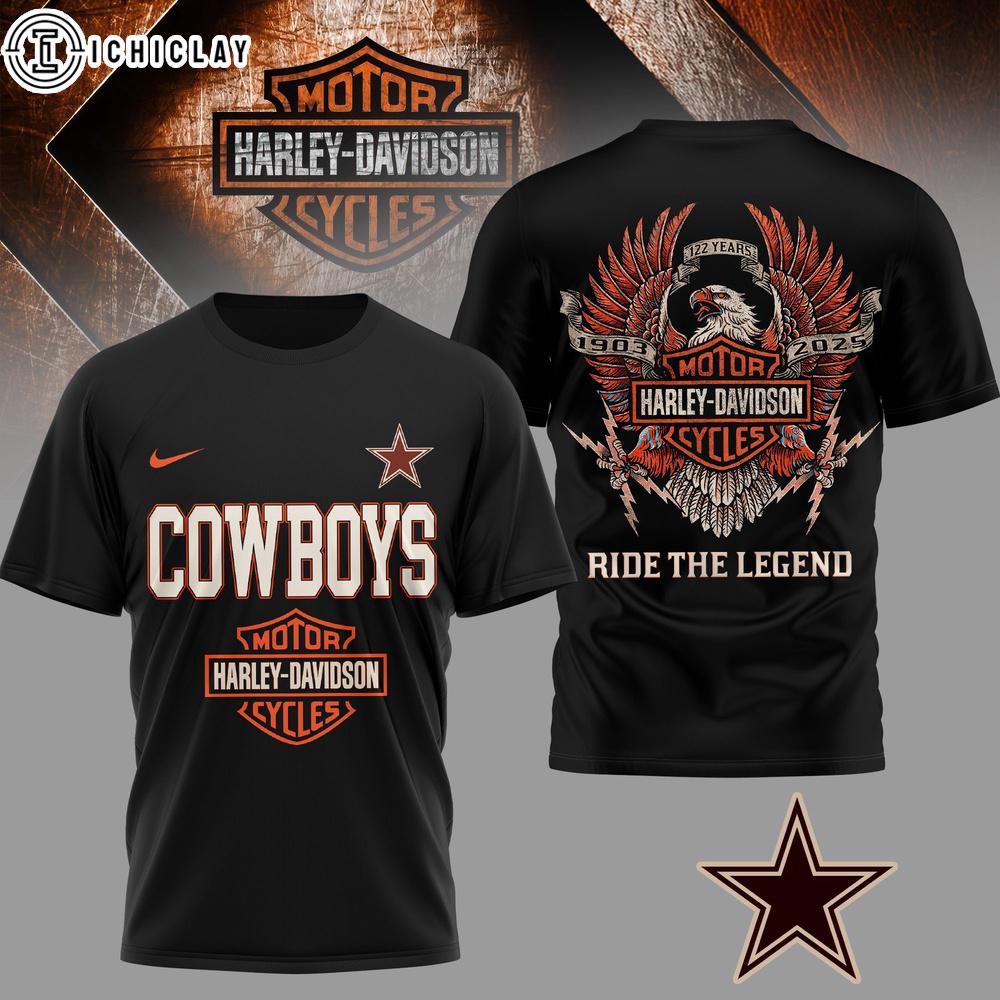 Photos Of Dallas Cowboys NFL 122 Year Harley Davidson 3D T-Shirt For Fans