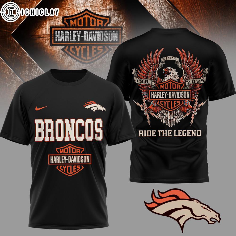 Denver Broncos NFL 122 Year Harley Davidson 3D T-Shirt For Fans
