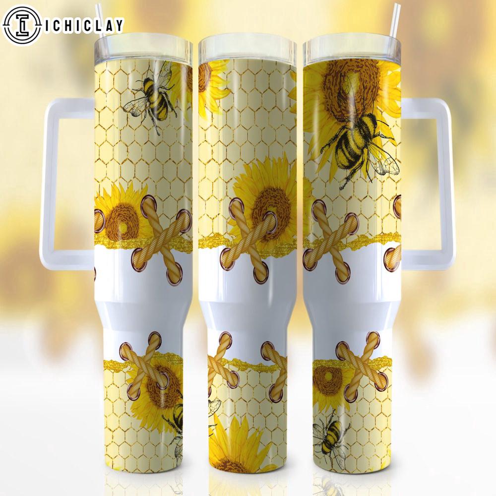 Honeycomb Sunflower Stainless Steel Tumbler 40Oz With Handle