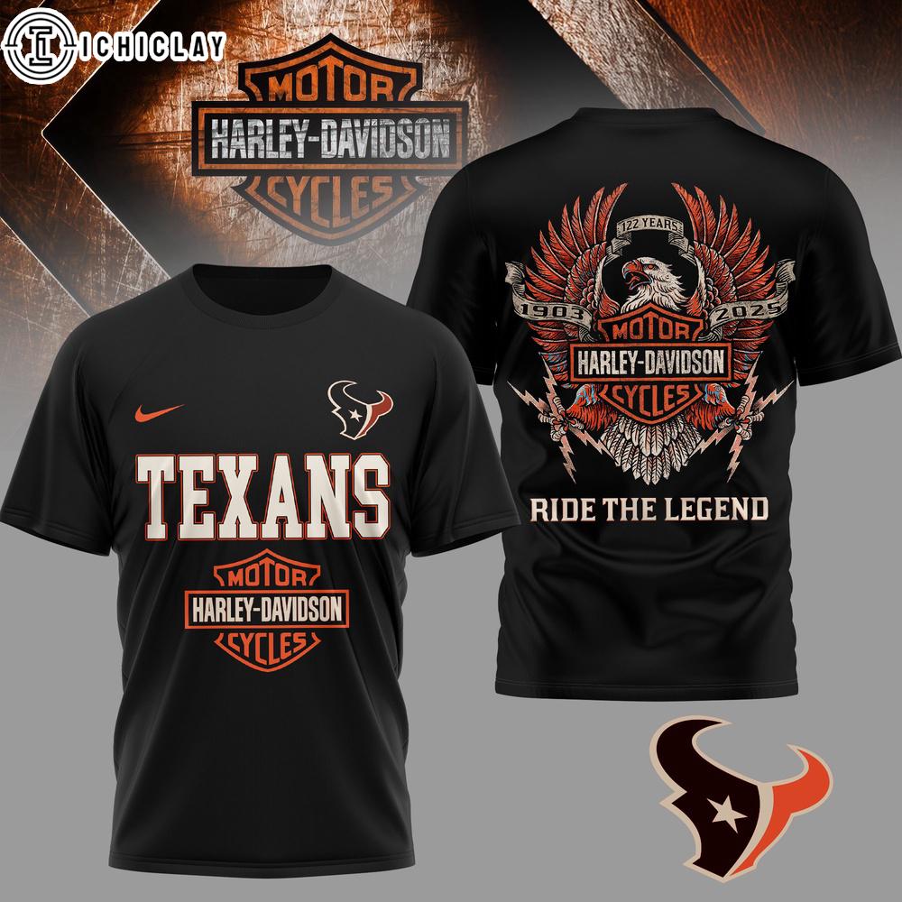 Product details: Houston Texans NFL 122 Year Harley Davidson 3D T-Shirt For Fans
