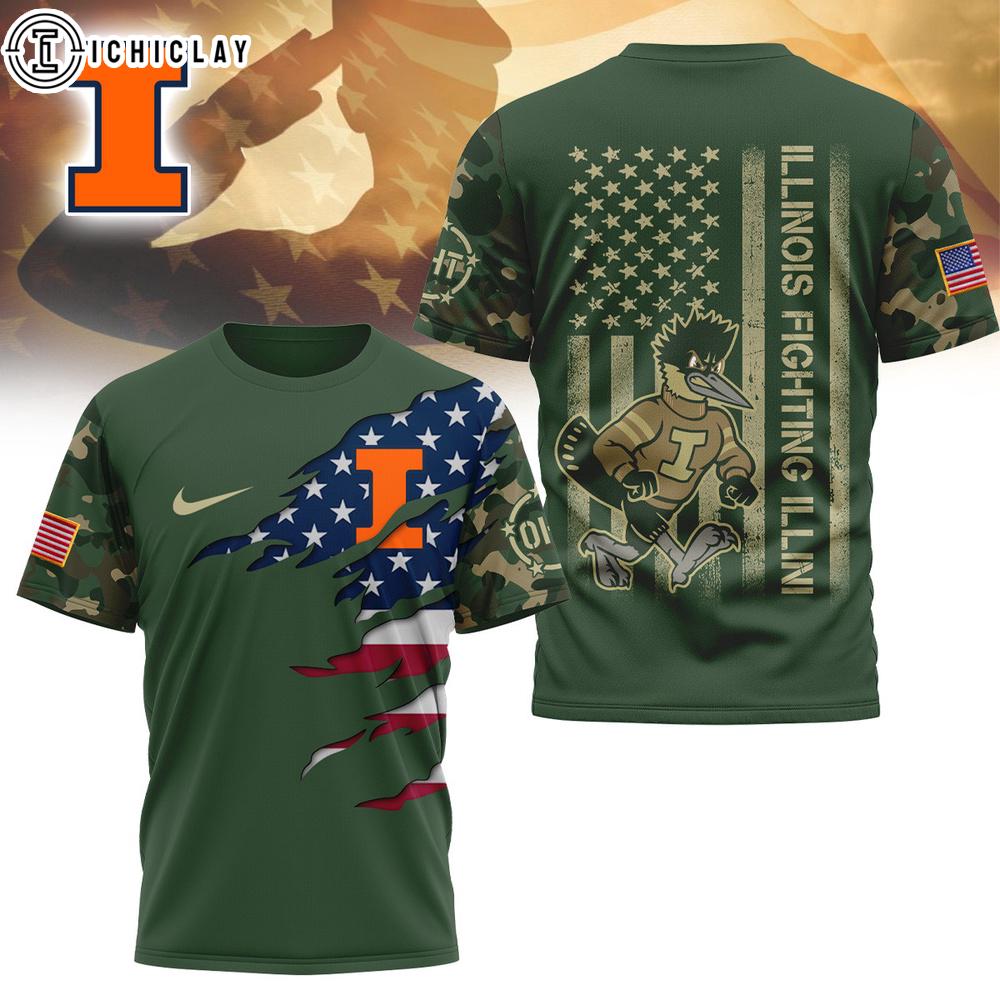 Illinois Fighting Illini NCAA Veteran 3D T-Shirt