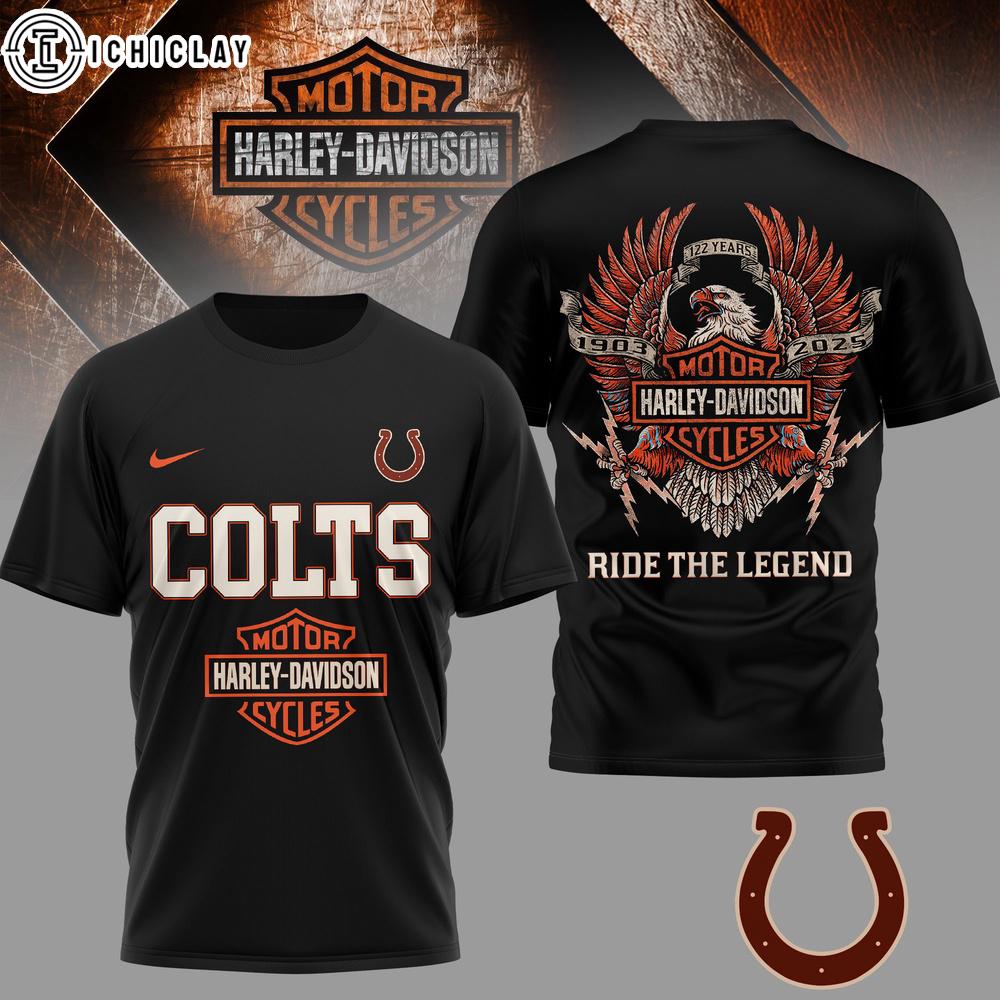 Product details: Indianapolis Colts NFL 122 Year Harley Davidson 3D T-Shirt For Fans