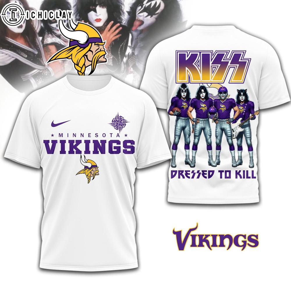 Photos Of Minnesota Vikings NFL Dressed to Kill Kiss Band 3D T-Shirt For Fans