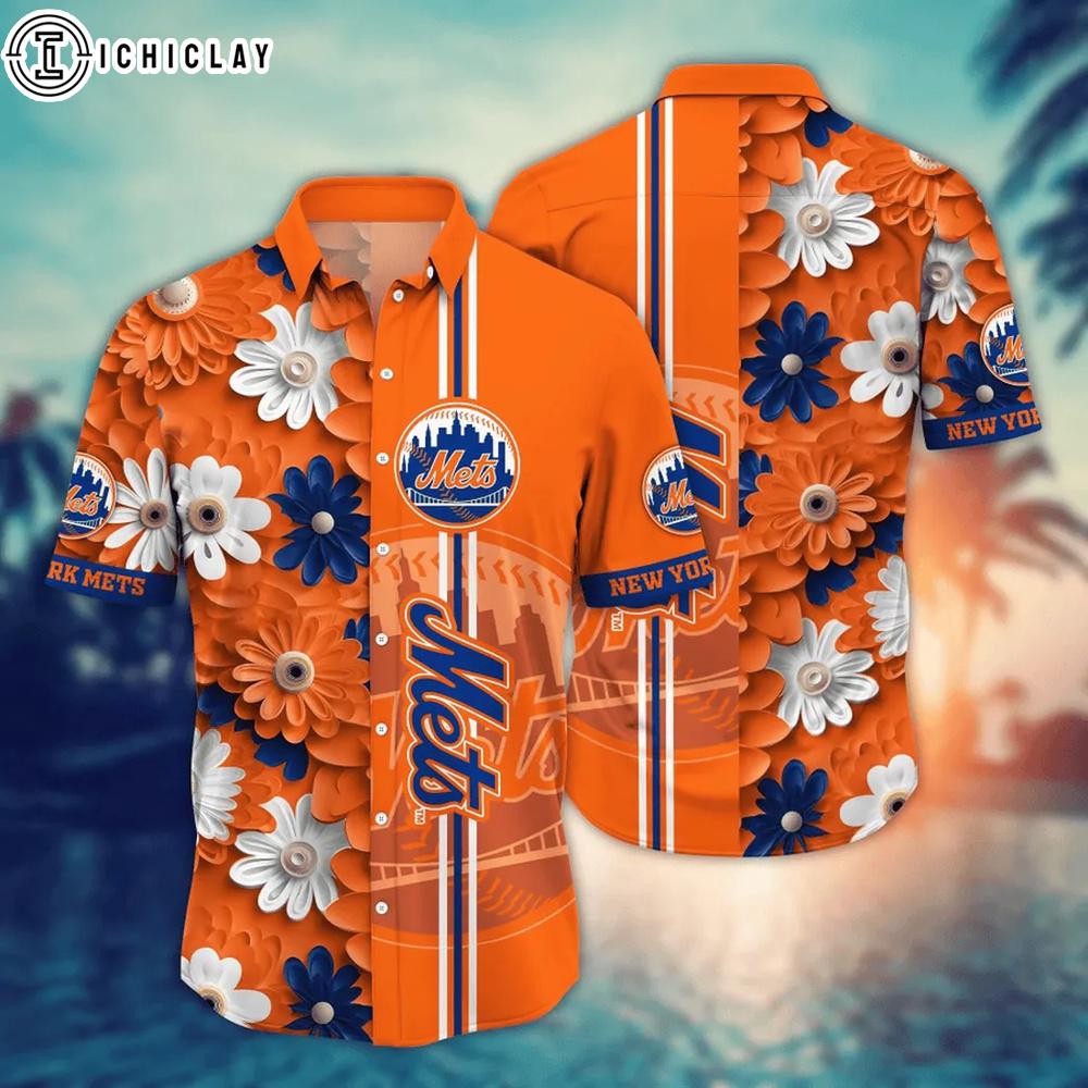Photos Of New York Mets Mets Orange & Blue Floral Summer Hawaiian Shirt
