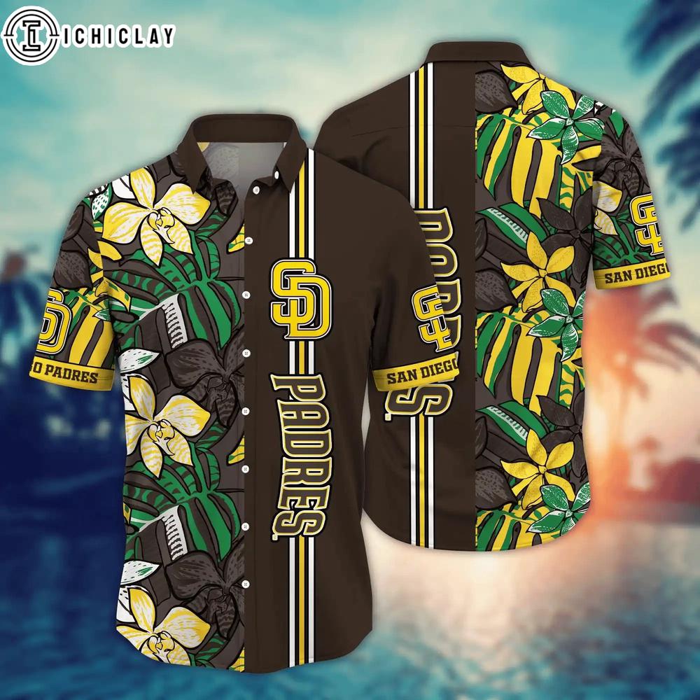 Photos Of San Diego Padres Tropical Stripe Summer Hawaiian Shirt